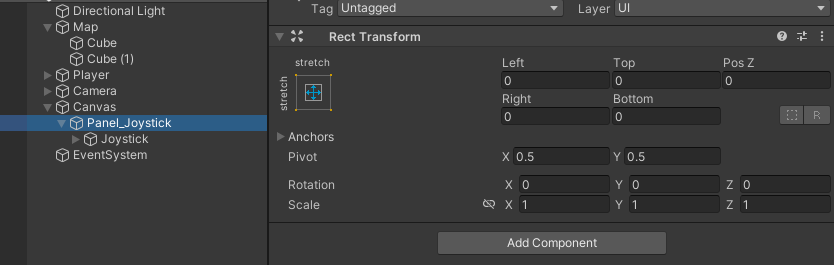 받으신후 Canvas를 생성해서 Joystick을 올릴 패널을 만드는게 좋아요.